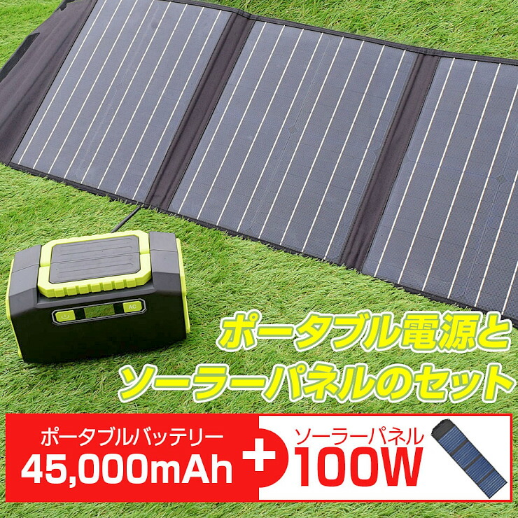 セット品 ポータブル電源 150w ソーラーパネル100w 大容量 45 000mah 167wh ポータブルバッテリー 防災グッズ 停電対策 停電グッズ Iphone Android スマホ 車中泊 アウトドア キャンプ 家庭用蓄電池 送料無料 Sermus Es